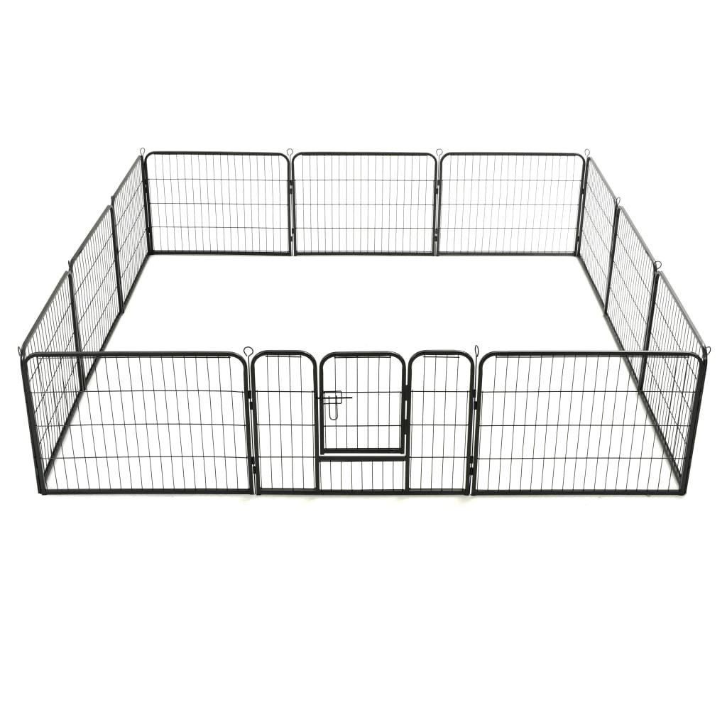 Dog Playpen 12 Panels Steel 31.5"x23.6" Black