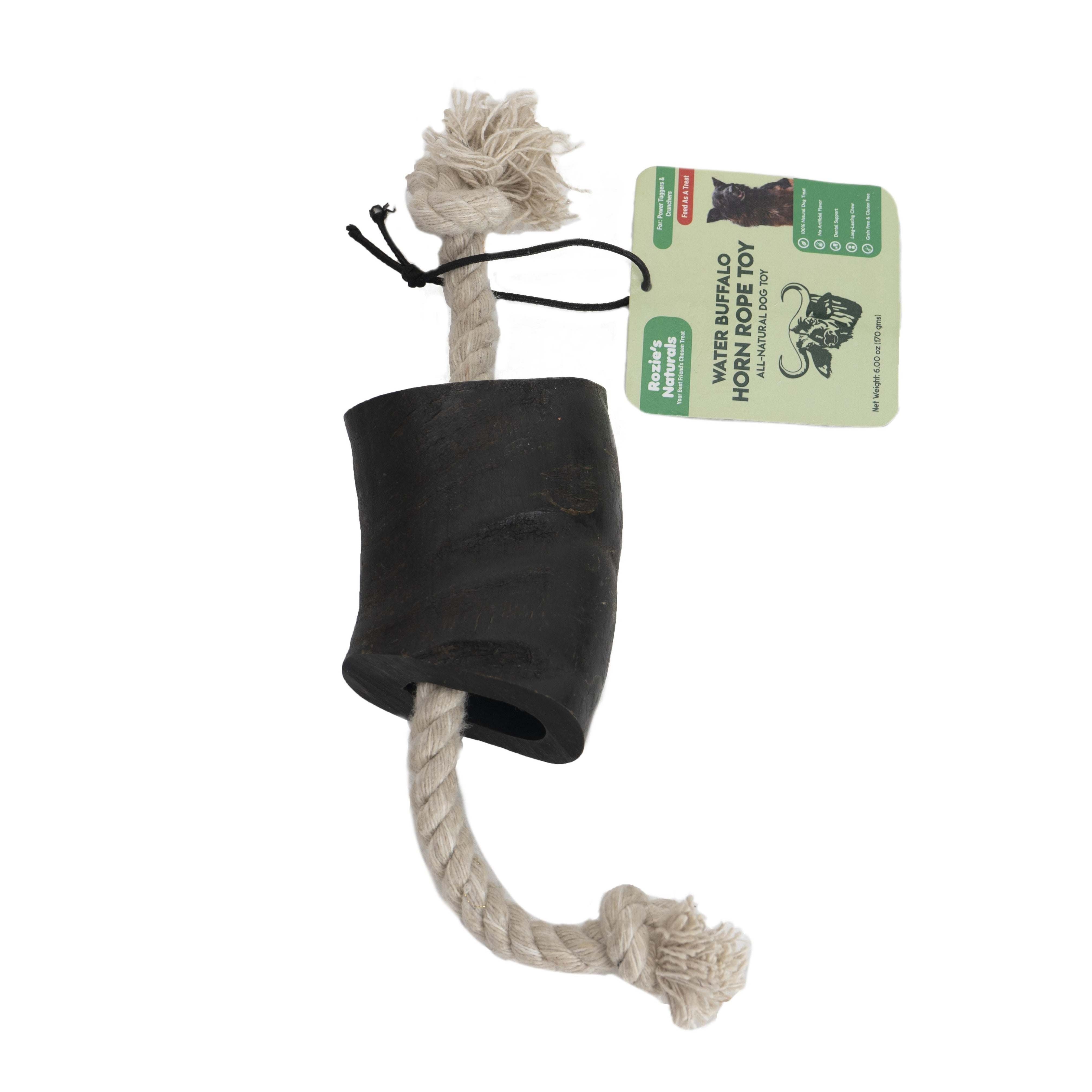 Home > Water Buffalo Horn Rope Tug Toy-100% Cotton Rope 14"; Long-Lasting; Natural Dog Treat & Chews; Dog Dental Chew Toy-2 COUNT-10 oz