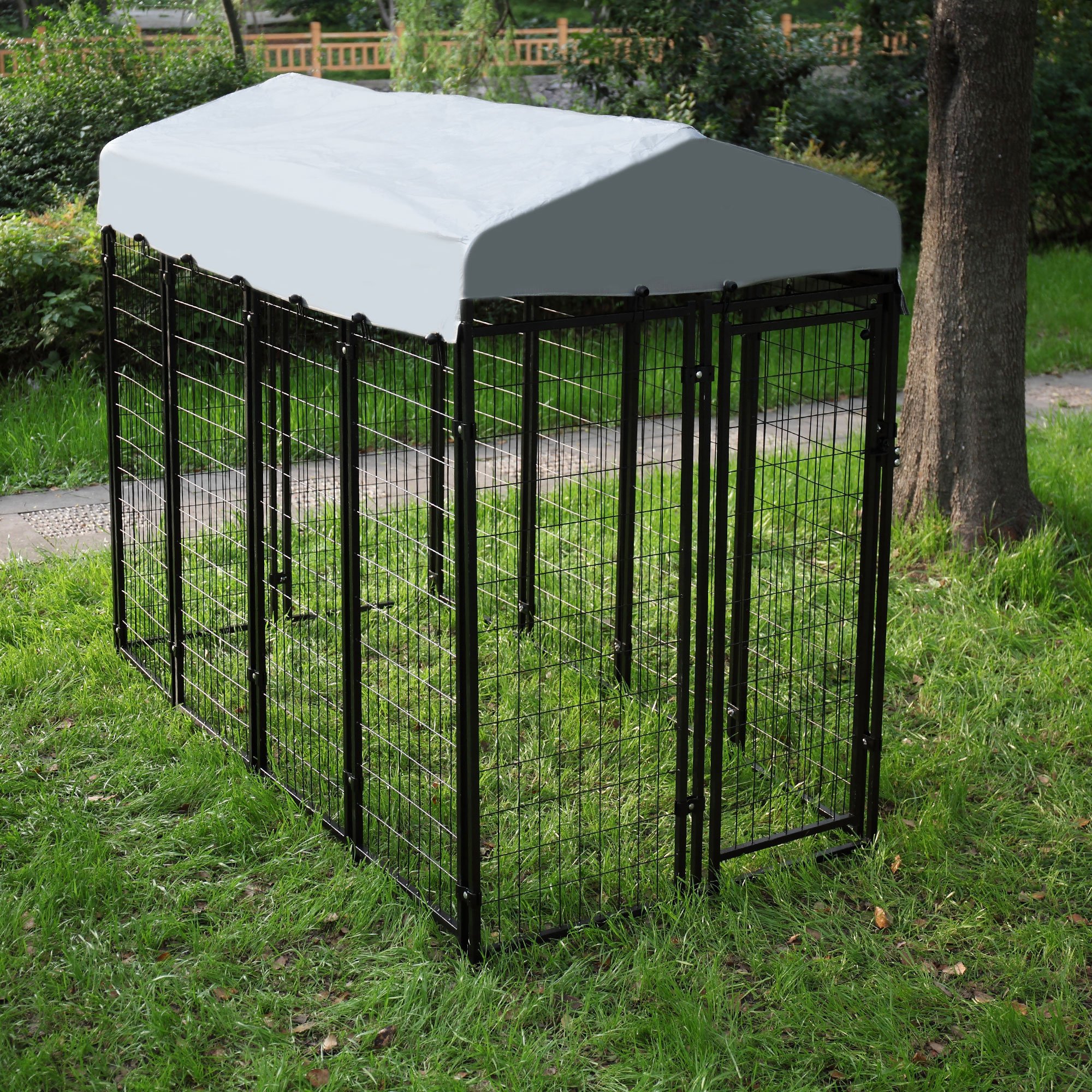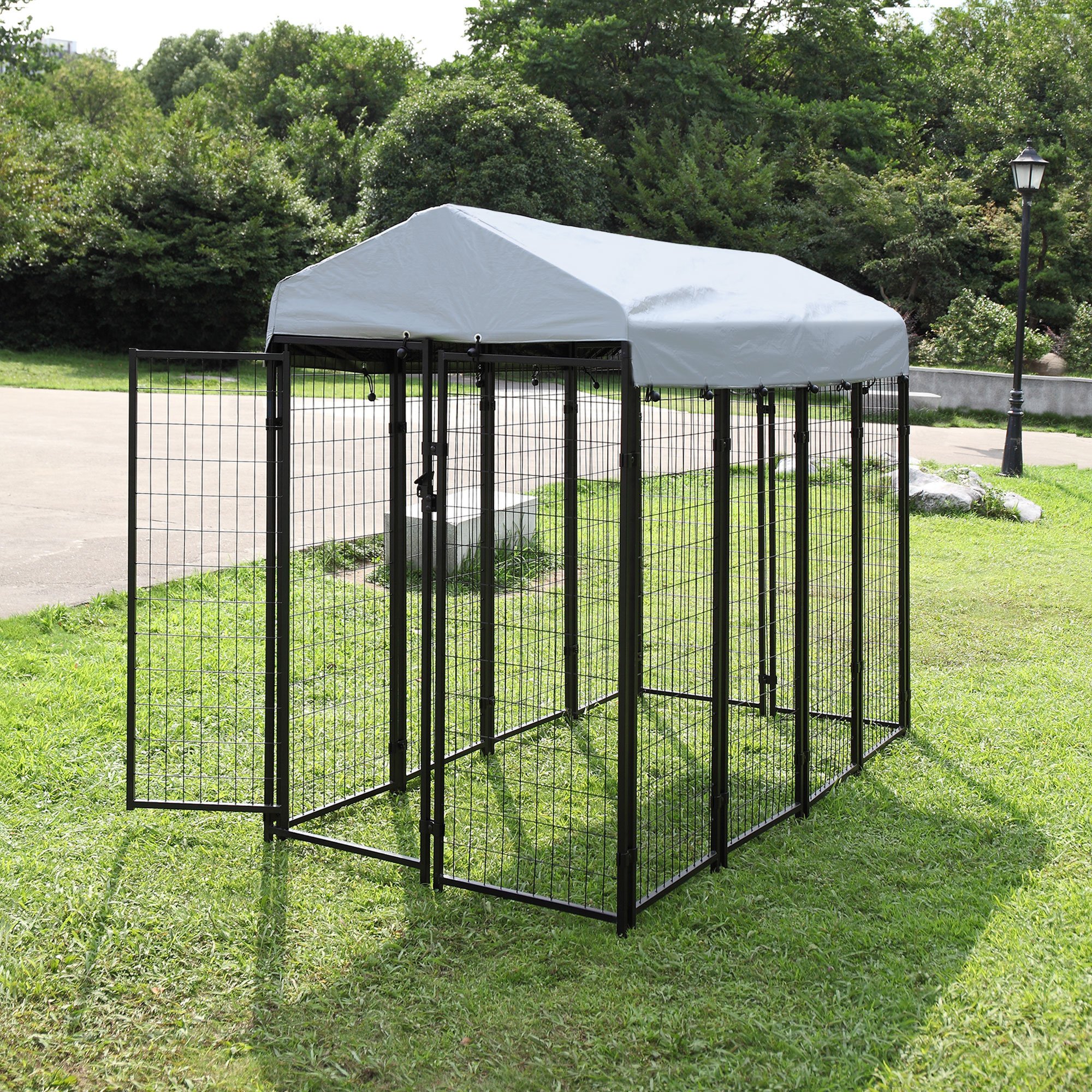 [Water-proof Canopy]:Enabling your dog to enjoy fresh air outdoors, this dog kennel is designed with a canopy, protecting your pet from rain and ultraviolet ray.